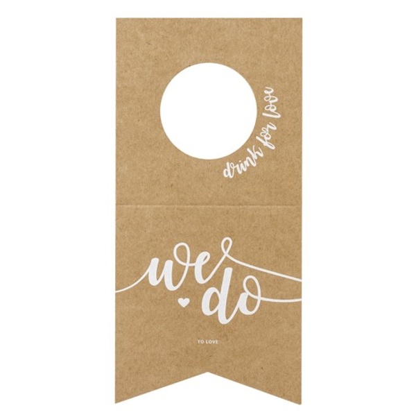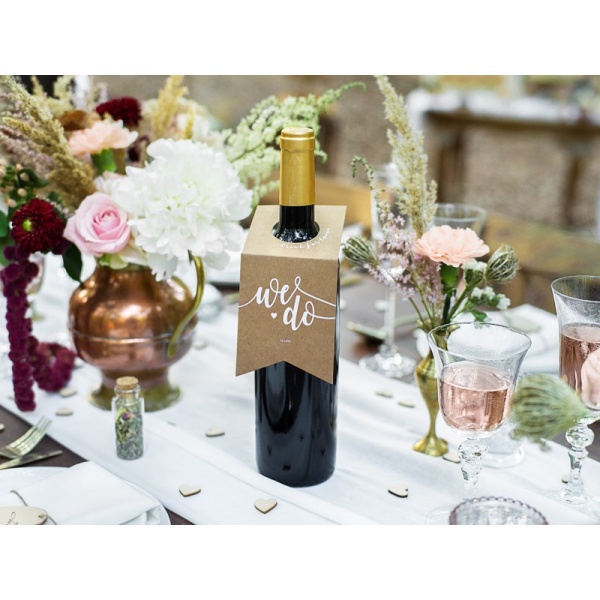 Cedulky na láhev vyrobené z kraftového papíru s bílým nápisem We do