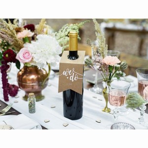 | Cedulky na láhev vyrobené z kraftového papíru s bílým nápisem We do Skvělý doplněk na ozdobu lahví na tématickou párty … |