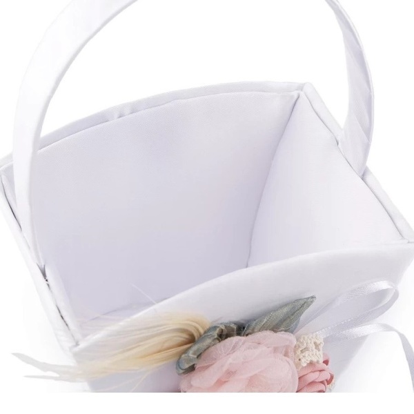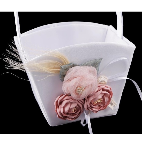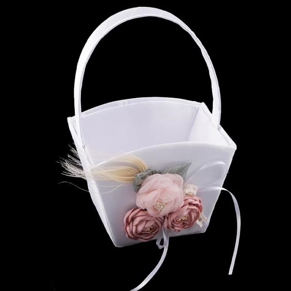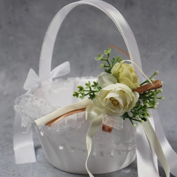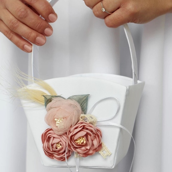 Saténový svatební košíček je stylovým doplňkem a neměl by chybět žádné družičce.