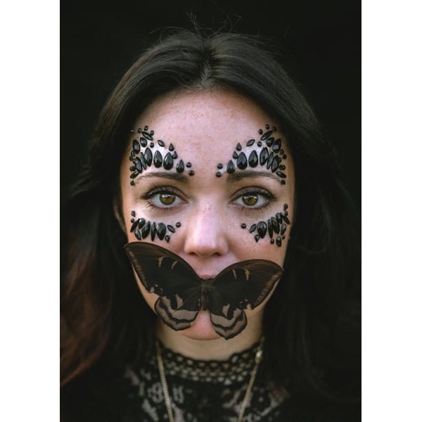 Samolepící kamínky na obličej ve tvaru černých drahokamů.