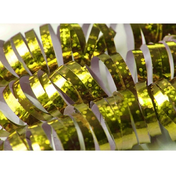Holografické házecí party serpentýny jsou vyrobeny ze zlatého lesklého papíru.