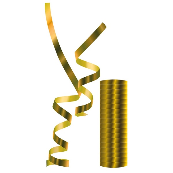 Metalické házecí párty serpentýny jsou vyrobené ze zlatého papíru.