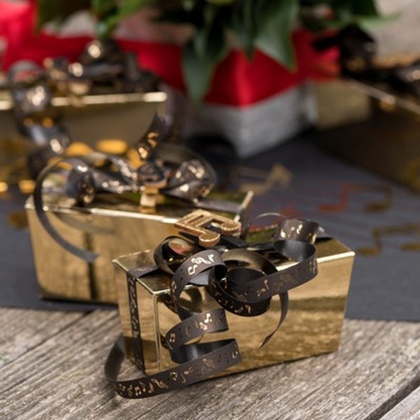 Hudební stuhu můžete využít jak k uvázání balónků, tak i k balení dárečků.