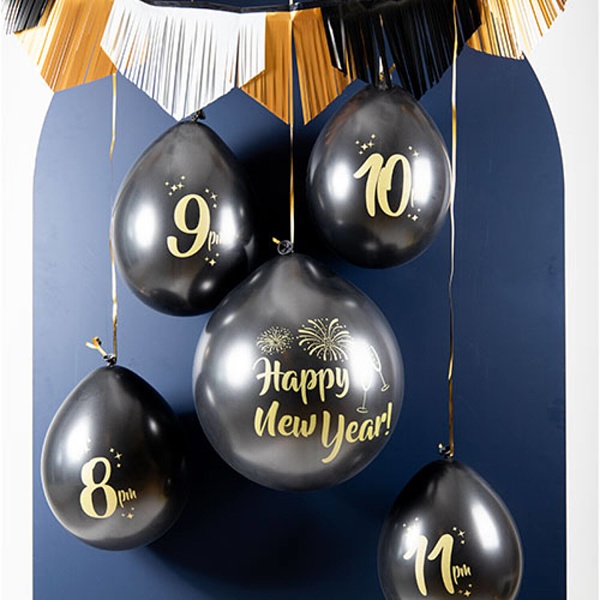 Balení obsahuje 5 ks : 1x balónek s nápisem Happy New year o velikosti 61cm a 4 ks s čísly 11, 10, 9 a 8 velikosti 33 cm.