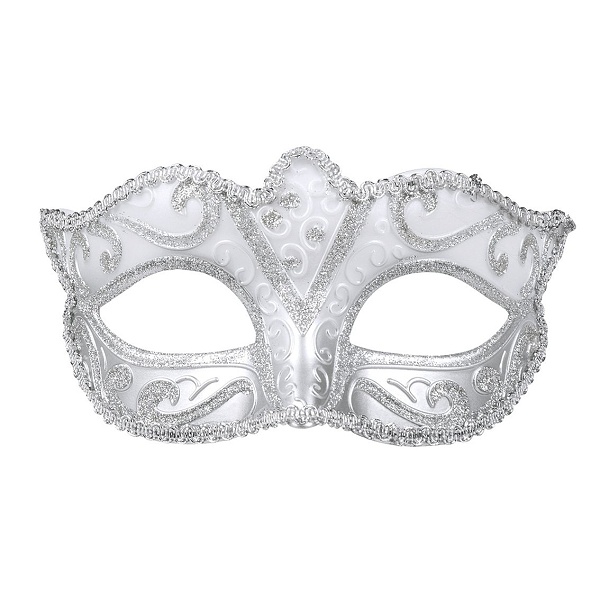 Stříbrná škraboška Felina je velmi elegantní maska na karnevaly i kostýmní párty.