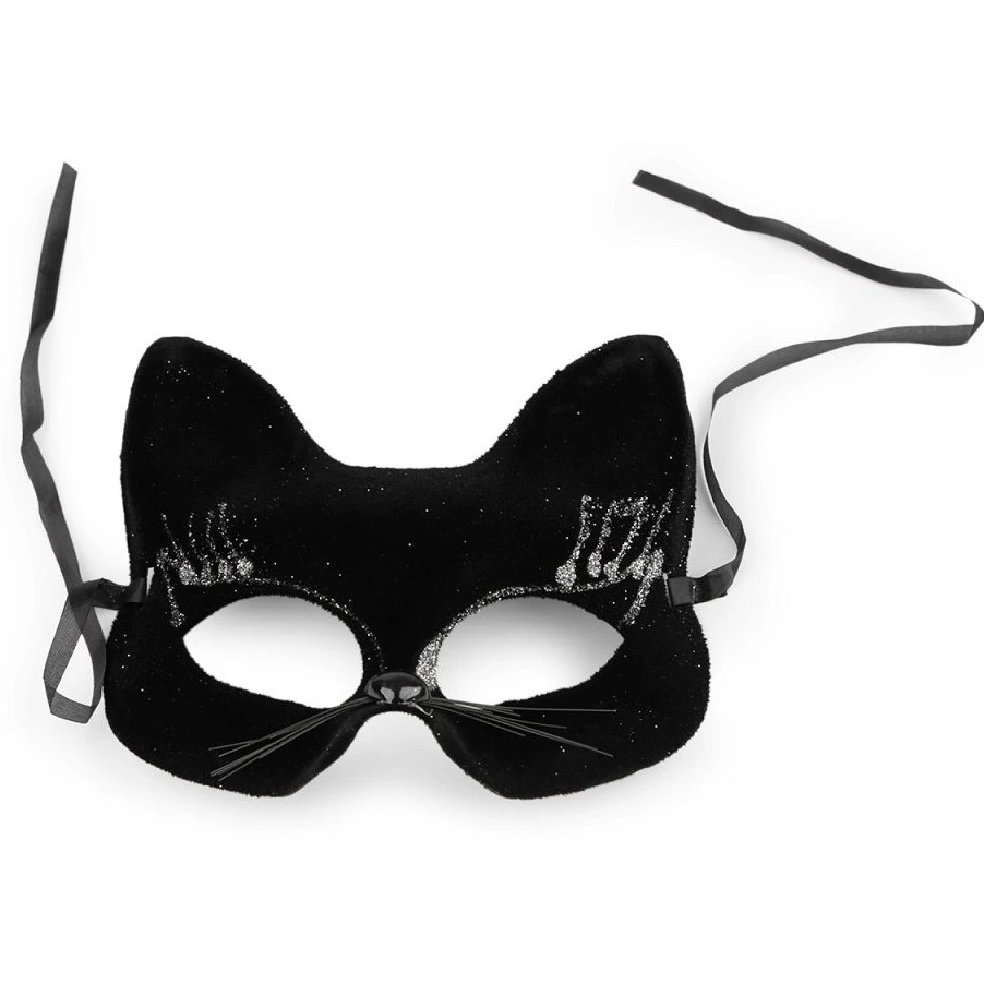 Karnevalová zavazovací černo-stříbrná škraboška vás promění v tajemnou kočku. Její povrch připomíná samet.