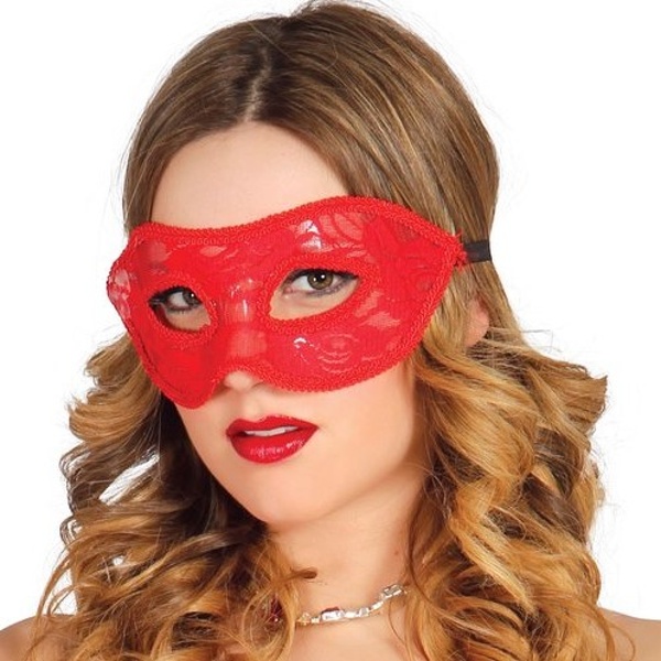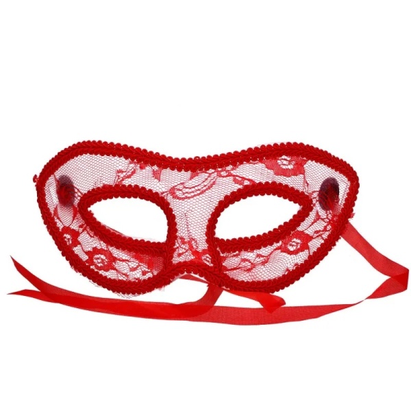Smyslná škraboška je červené barvy a prolamovaná struktura jí dodává tajemnost a jemnou eleganci.