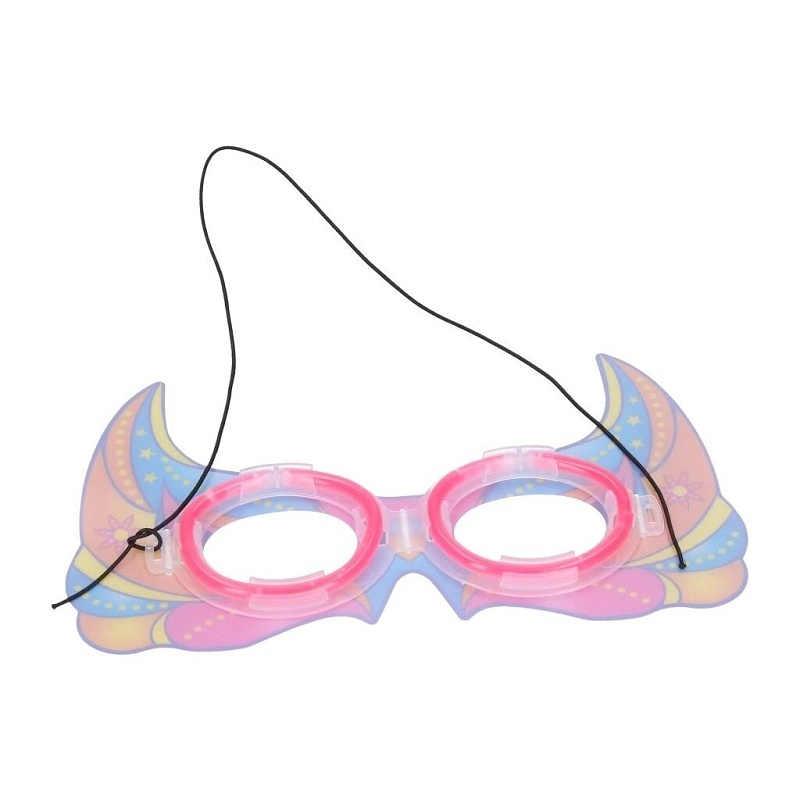 Jednoduchá montáž: vložte aktivované svítící tyčinky do masky a utáhněte provázek