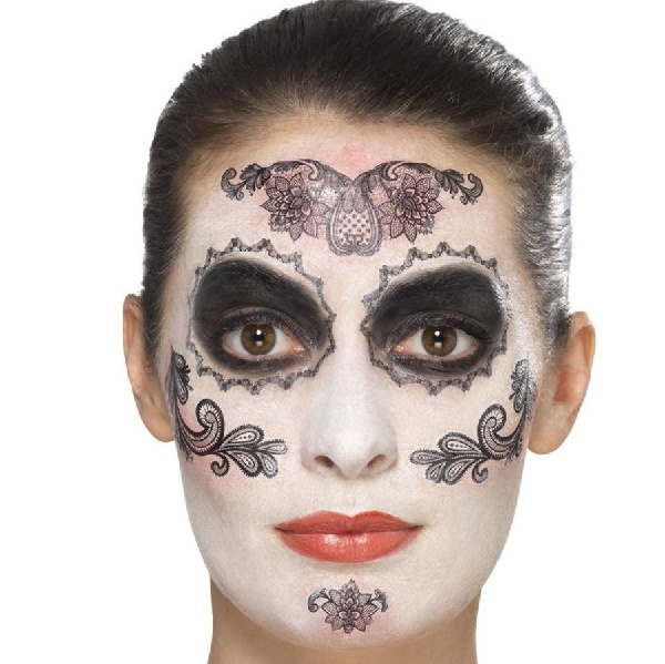 Set doplňků obsahuje : tetování, barvy na obličej, umělé řasy, nalepovací kamínky a aplikátory.