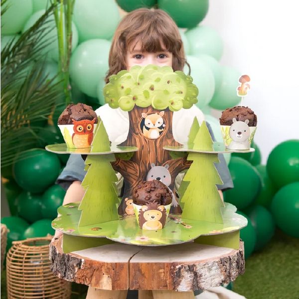 Vystavte muffiny na oslavě pro nejmenší v tématu Lesní svět na tomto fantastickém stojanu.