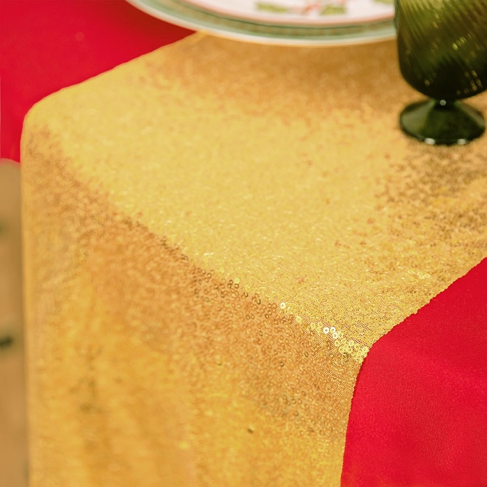Dodejte svému stolu luxusní vzhled s tímto nádherným zlatým flitrovým ubrusem. Jeho lesklý povrch vytváří jedinečný efekt, který upoutá pozornost a dodá vašim oslavám výjimečný nádech. Ideální pro svatby, oslavy, bankety či jiné slavnostní události.