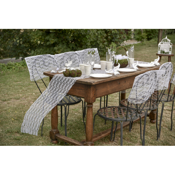 Velmi jemná a ušlechtilá krajková tkanina, která dokonale zapadá do romantické svatební dekorace.