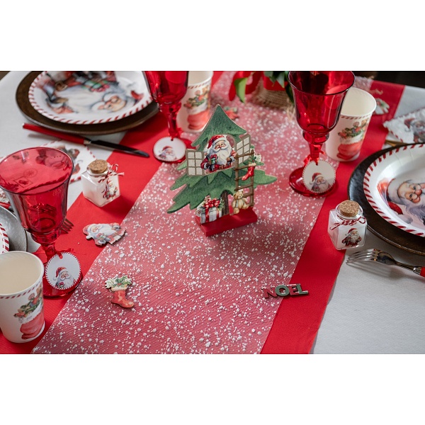 Stolová středová šerpa se zasněženým dekorem je skvělou volbou pro výzdobu štědrovečerního stolu.