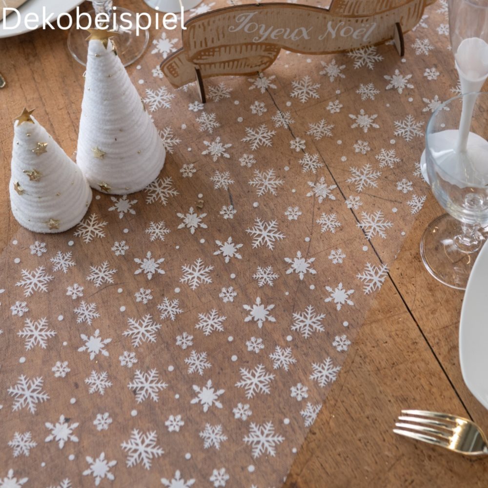 Stolová středová šerpa s dekorem ledových krystalků je skvělou volbou pro dekoraci štědrovečerního stolu.