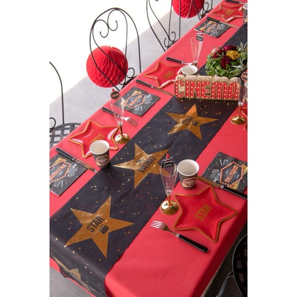 Středová černá šerpa Hollywood s velkou zlatou hvězdou Cinema a drobnými hvězdičkami je vyrobena ze 100% netkaného polyesteru.