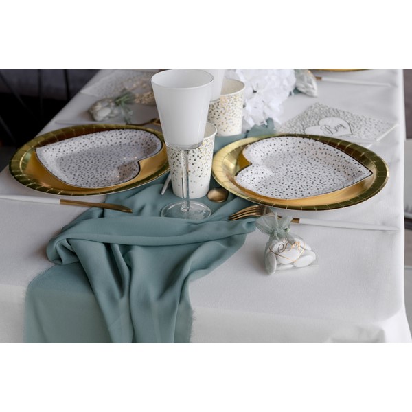 | Stolová šerpa v barvě eucalyptu Šerpa má třásněný vzhled na okrajích a je velmi tenká Materiál: polyester Rozměr: … |