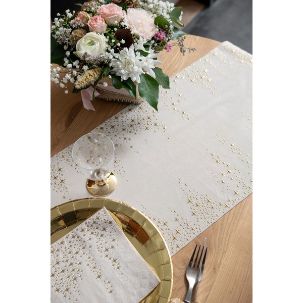 Stolová středová šerpa v barvgě ivory se zlatými hvězdičkami