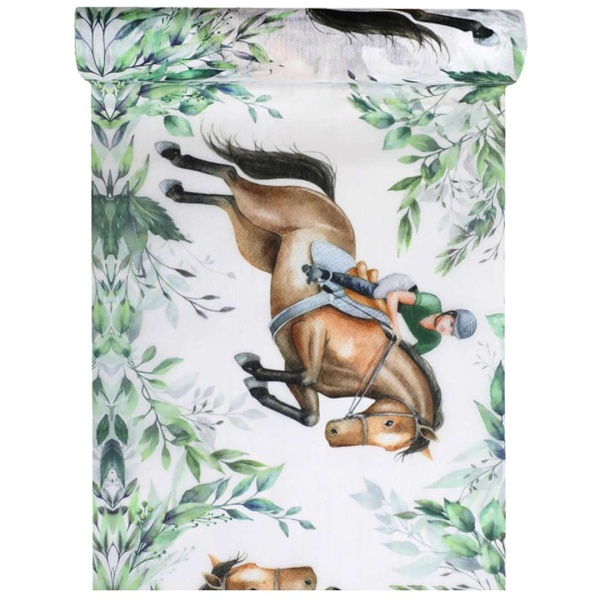 Jedinečná stolní středová šerpa vás zavede do světa cválajícího koně a jeho jezdce.