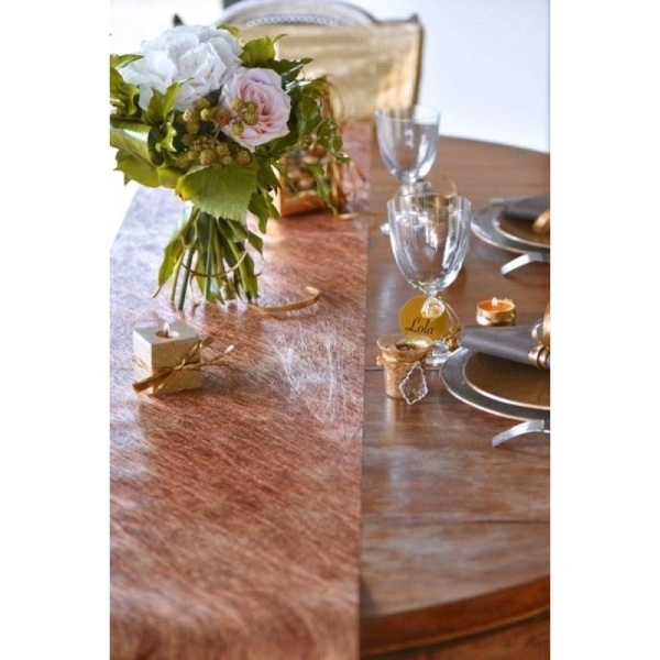 Šerpa v metalickém růžovém zlatě vám krásně ozdobí každý slavnostní stůl, ať už se jedná o svatební, narozeninový