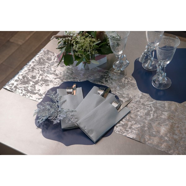 Stolová šerpa v metalicky stříbrné barvě je vhodná pro mnoho příležitostí. Středová šerpa je z polyesterové tkaniny, a vhodná na slavnostní vánoční tabuli, silvestrovskou oslavu, tématické párty, narozeninovou oslavu ve stříbrné barvě.