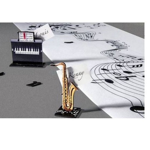 Stolová šerpa v bílé barvě s černými notami je tím správným stolování na párty s hudební tématikou.