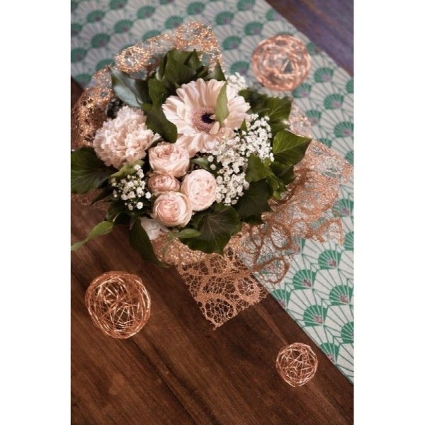 Právě tato krajková stolová šerpa v moderní a velmi žádané barvě rose gold bude působit na slavnostním stole velmi elegantně.