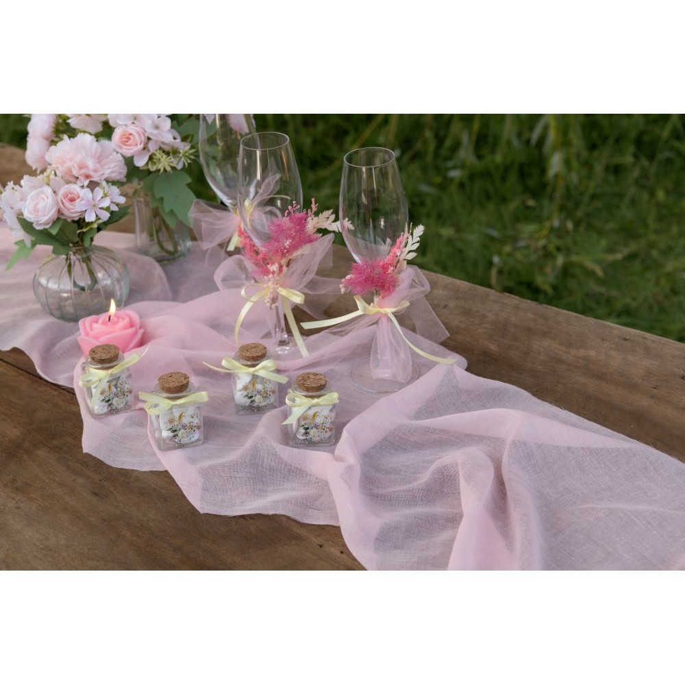 Mušelínový středový běhoun na stůl ve světle růžové barvě