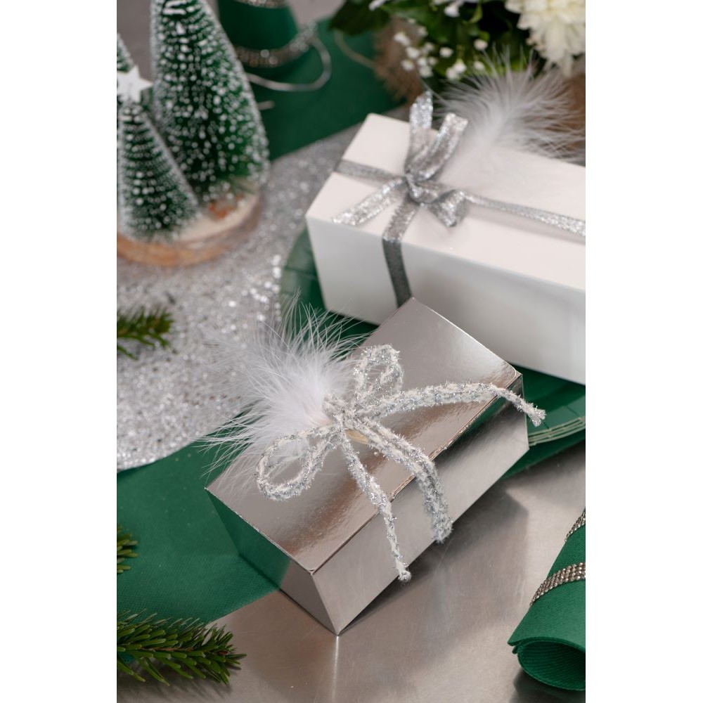Stříbrná třpytivá vázací stuha dodá vaší dekoraci třpytivé detaily.