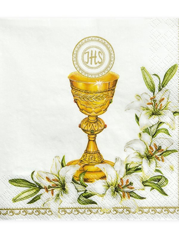 Třívrstvé ubrousky Chalice, bílé s barevným potiskem, velikost 33x33 cm. (1 ks / 20 ks)