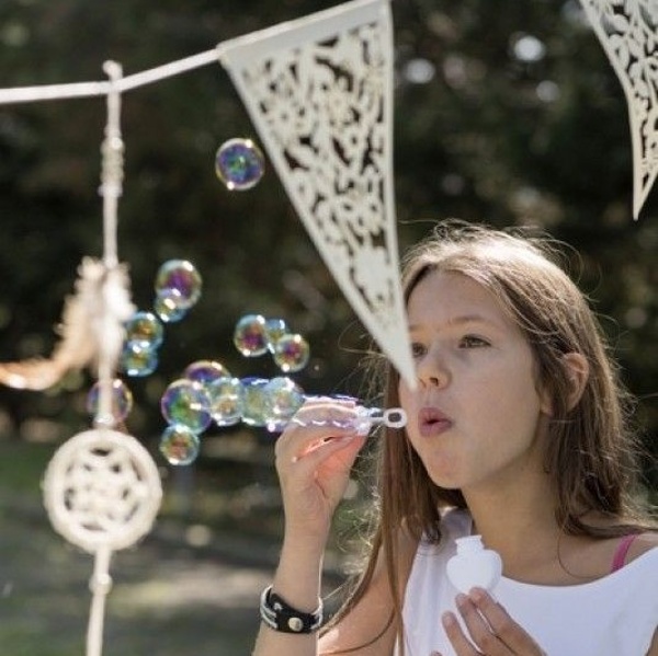 Bublifuk v designu bílého srdíčka je originálním doplňkem na všechny svatby.