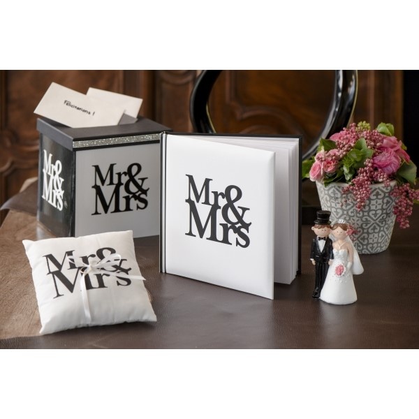 Tuto roztomilou dekoraci můžete kombinovat s dalšími svatebními doplňky ve stejném stylu "Mr + Mrs".