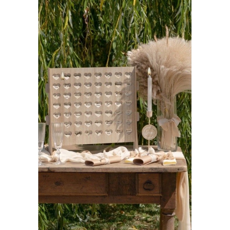 Tato kniha přání bude na vaší svatbě středem pozornosti. Nechte si zapsat od svých svatebních hostů a blízkých něco krásného na tato malá dřevěná srdíčka.