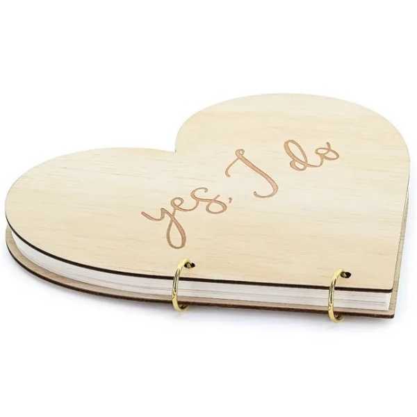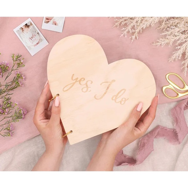 Dřevěná svatební kniha hostů ve tvaru Srdce