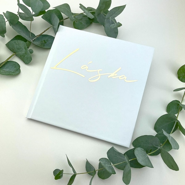 Svatební kniha Láska je určena na vpisování přání a gratulací novomanželům od svatebních hostů po obřadu a během svatební hostiny.