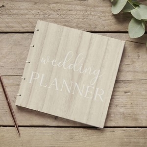 Tento elegantní dřevěný svatební plánovač je to, který potřebuje každá nastávající nevěsta k plánování své svatby. Plánovač je dodáván s přepážkami, obálkami a šablonami.