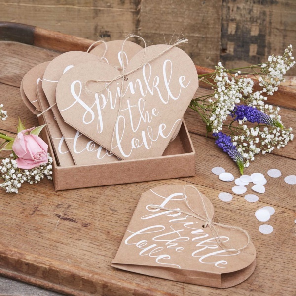 Zkombinujte tyto konfetové sáčky s dalšími produkty ve stylu nature a vytvořte přírodní svatbu.