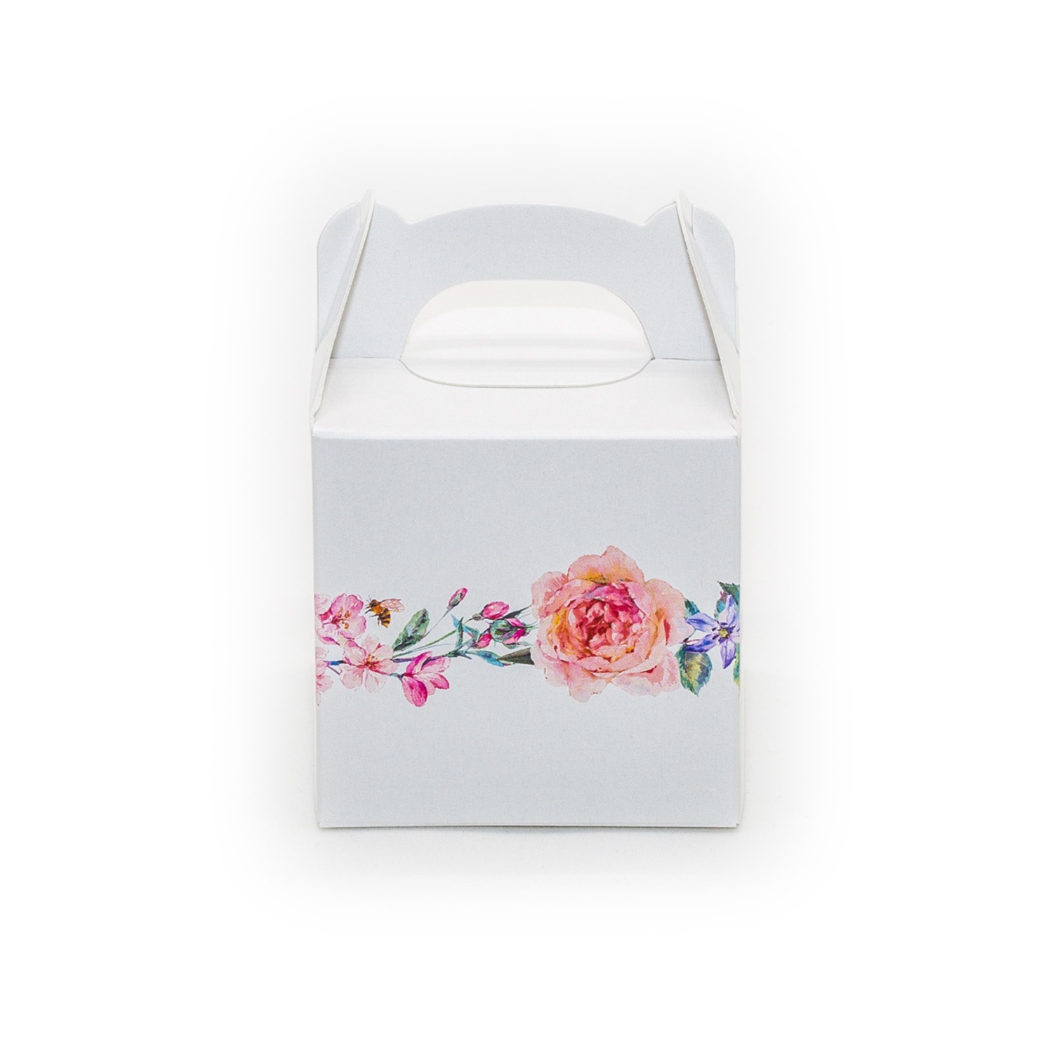 Poděkujte stylově svým svatebním hostům. Tradiční výslužky již nikoho nepřekvapí. Zkuste malý dárek, který zaujme. Úžasná svatební krabička s květinovým vzorem na svatební mandle nebo malý dáreček pro hosty je vyrobená z potravinářské lepenky, která má atest pro přímý styk s potravinami. Květinový motiv je realizován digitálním tiskem. Krabička je součástí svatebního setu Boho Flowers , kombinujte proto více možností a nikdy nesáhnete vedle.