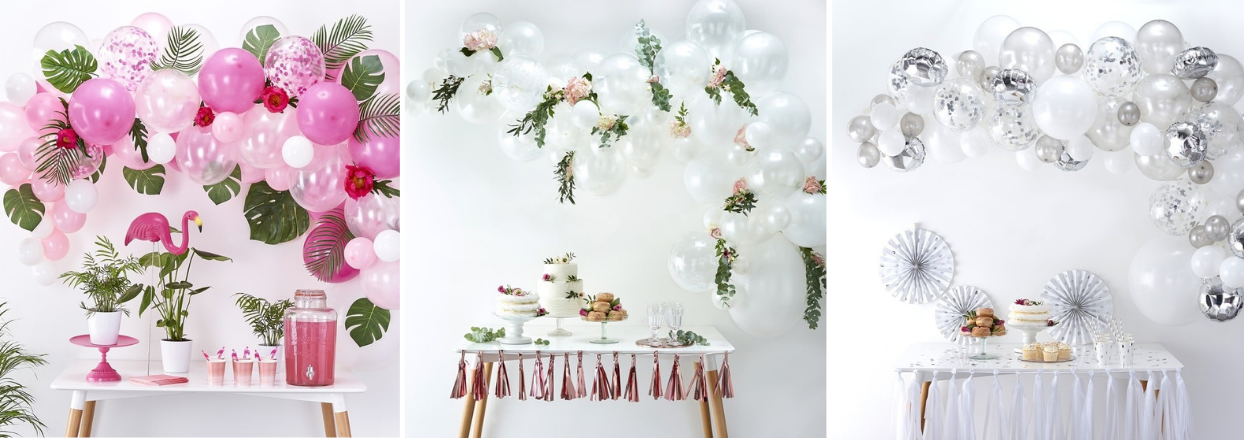 Balonkami lze ozdobit sweet bary, svatební automobily, využít je ve fotokoutku. Balonkové dekorace nemusí půsbit lacině ani pouťově. Ve svatební balonkové nabídce vítězí transparentnost, bílá barva, lehké pastely, chromové odstíny. Průhledné balonky s peříčky nebo zlatými konfetami určitě zapůsobí nejen na svatební hosty, ale budou námětem i pro svatebního fotografa.