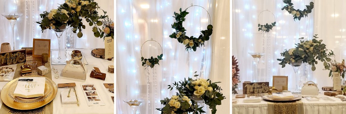bílozlatá kombinace s jemnou květinovou dekorací je osvědčená kombinace pro romantické a stylové svatby. Pokud se vám líbí elegance, která není přezdobená, ale ani fádní, je to dobrý kompromis pro čistý a módní styl.