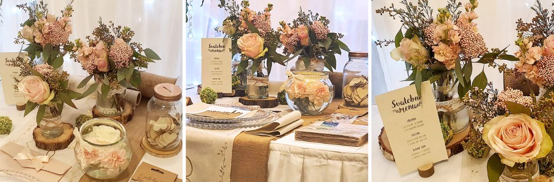 Svatby na statcích stále mají zelenou. Svatební obřad s hostinou v přírodní lokalitě je stále největší fenomén. Spojit hezký svatební zážitek s romantickou přírodní scenérií velmi láká. Svatební tabule zdobíme jutou, květinami s přírodními doplňky.