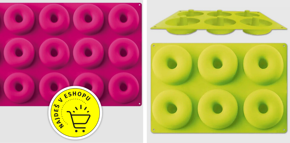 Silikonovou formu na donuty lehce vymažte olejem a naplňte těstem cca 0,5 cm pod okraj.