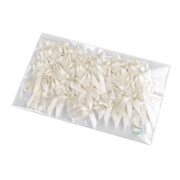 Skládají se ze dvou saténových stuh o šíři 7 mm, střed mají ozdobený perlovou květinkou.