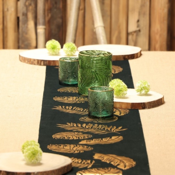Velmi efektní dekorativní skleněný svícen s vylisovanými listy zelený, se zlatým okrrajem
