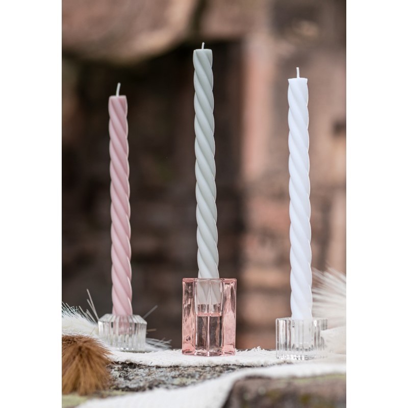 Elegantní pastelově růžový skleněný svícen ve tvaru kvádru z hladkého skla