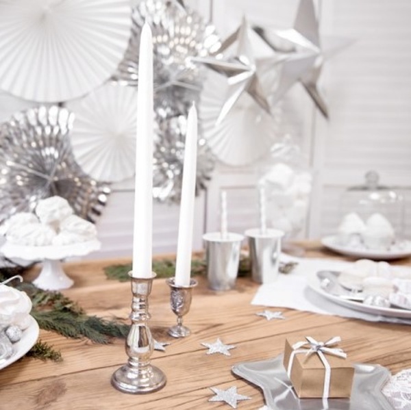 Dekorativní štíhlá svíčka v bílé barvě. Skvělá dekorace nejen na svatební stůl nebo sváteční tabuli.
