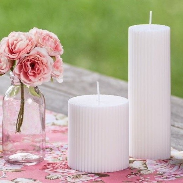| Svíčka bílá žebrovaná ve tvaru válce Tato pěkná bílá válcová svíčka se bude hodit k výzdobě stolu na svatbě, křtu … |