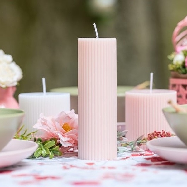 Tato žebrovaná svíčka ve tvaru válce je ideální pro vytvoření útulné atmosféry v každé místnosti nebo jakékoliv zahradní, narozeninové či svatební párty. Je zároveň perfektním doplňkem krásných skleněných hranolových svícnů.