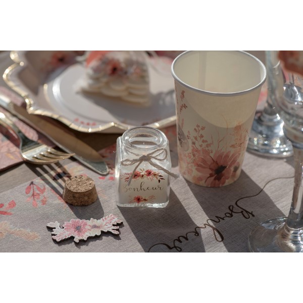 | Krásná svíčka ve skleničce, zdobená květinovým designem a korkovým uzávěrem Romaticky vám ozdobí letní nebo narozeninovou … |
