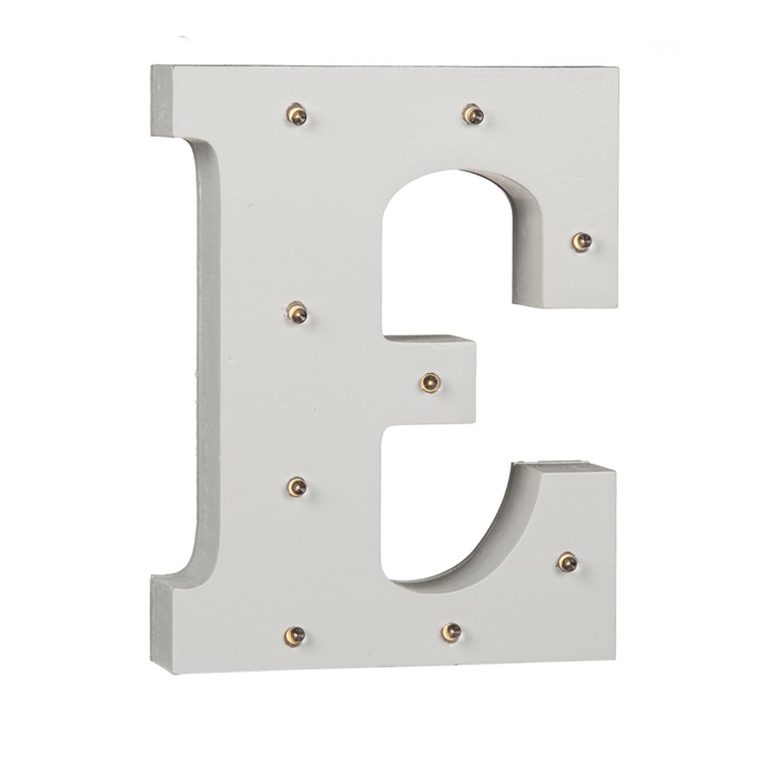 Svítící písmeno E s LED žárovkami pro stylové osvětlení a originální dekoraci