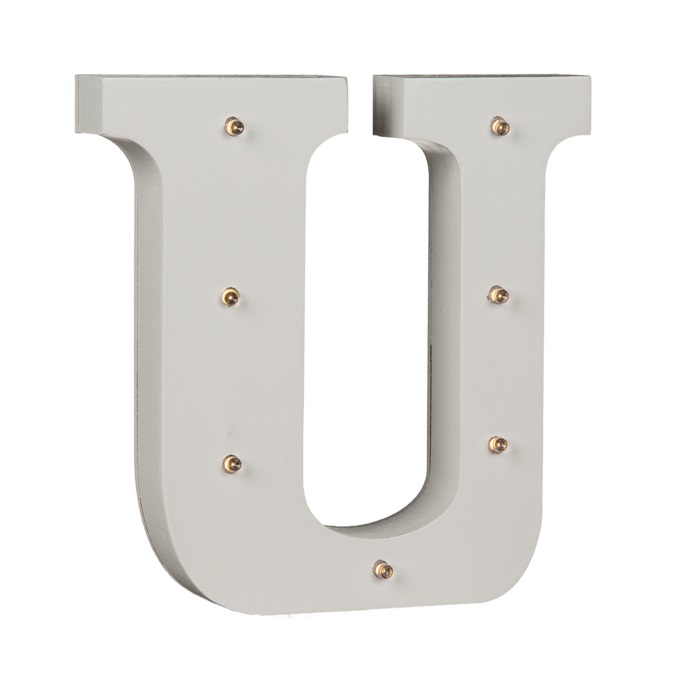 Svítící písmeno U s LED žárovkami pro stylové osvětlení a originální dekoraci